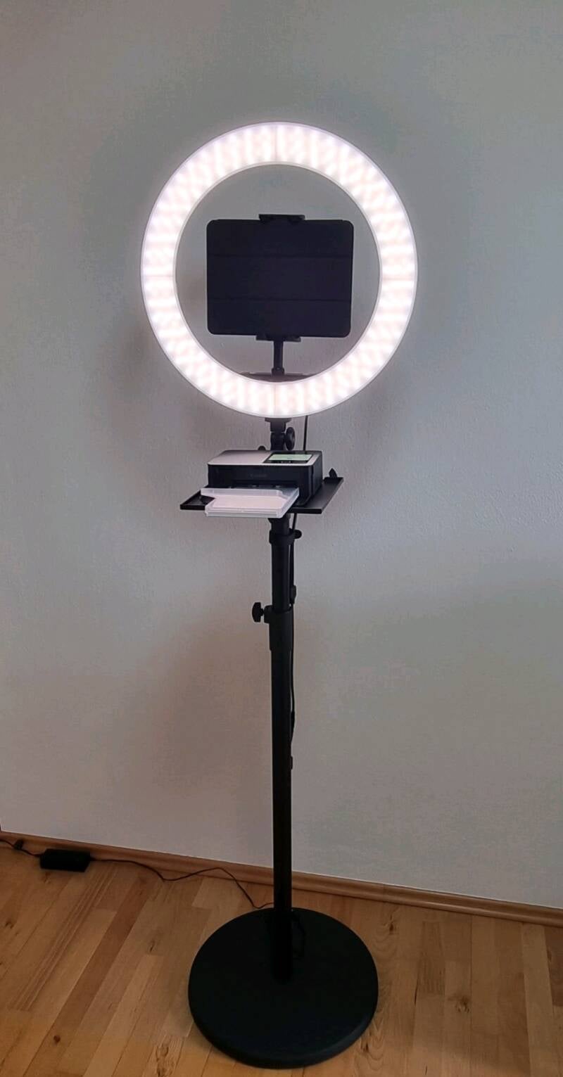 Unsere Fotobox ist eine super praktische und selbsterklärende Fotobox, die nahezu überall verwendbar ist und binnen 5 Minuten einsatzbereit ist. Die Fotobox besteht aus einem Stativ mit Ringlicht, einem Tablet und einem Fotosofortdrucker, der Hochglanzfotos in Postkartenformat innerhalb von 99 Sekunden druckt.